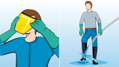 4. Togli la tuta e riponila nel contenitore per lo smaltimento.