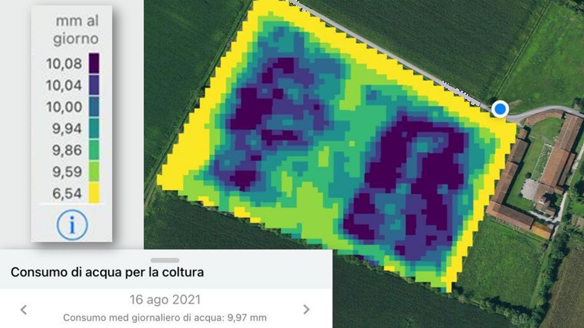 Per razionalizzare l'impiego della risorsa idrica l'agricoltore ha a disposizione Climate FieldView, una piattaforma al cui interno sono disponibili diversi tool, uno dei quali permette di misurare i livelli di evapotraspirazione della coltura.